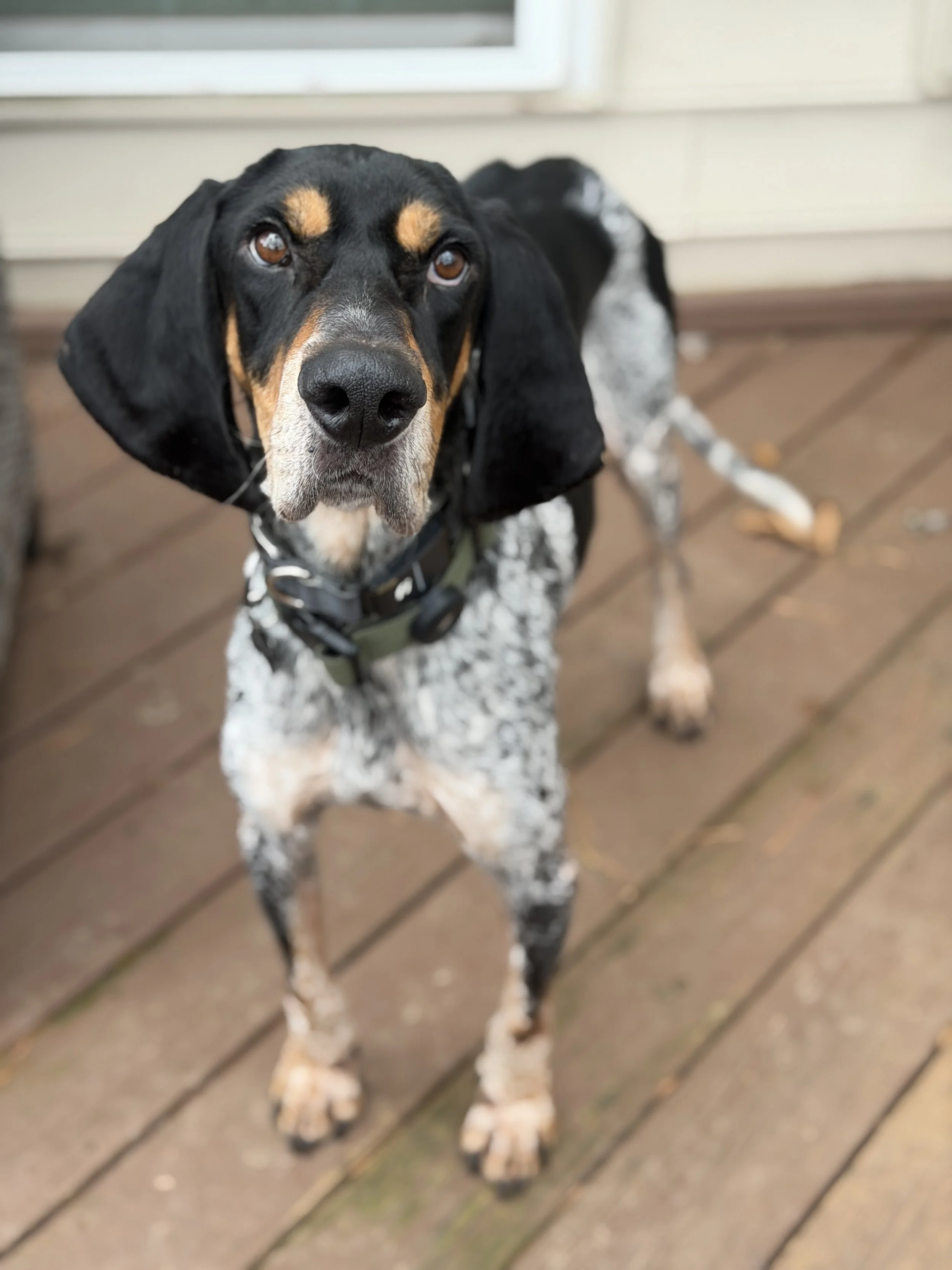 5 year old, Blue Tick Coonhound, Sherlock recently joined us from our city shelter. Read more about him on our ADOPT page.