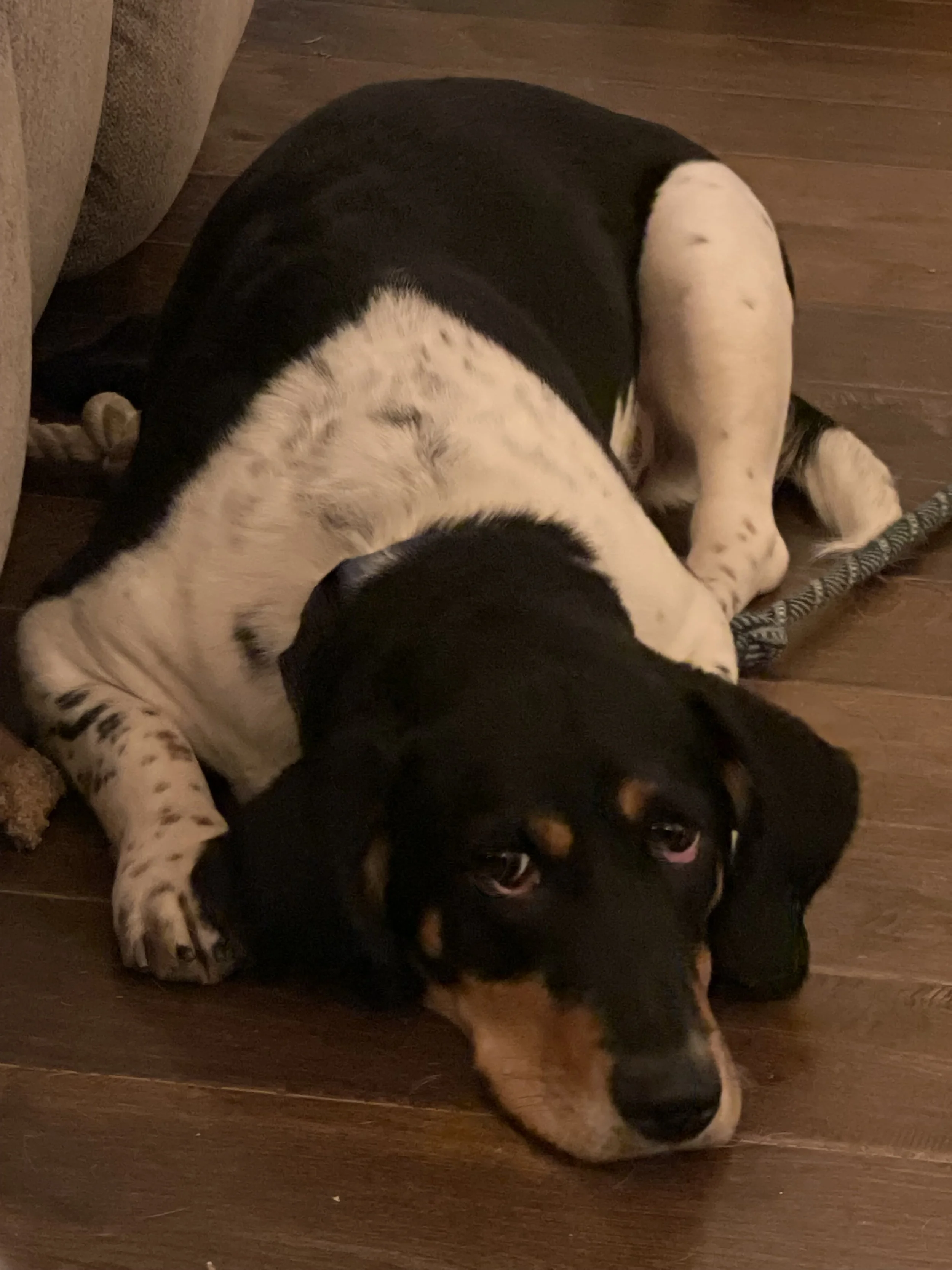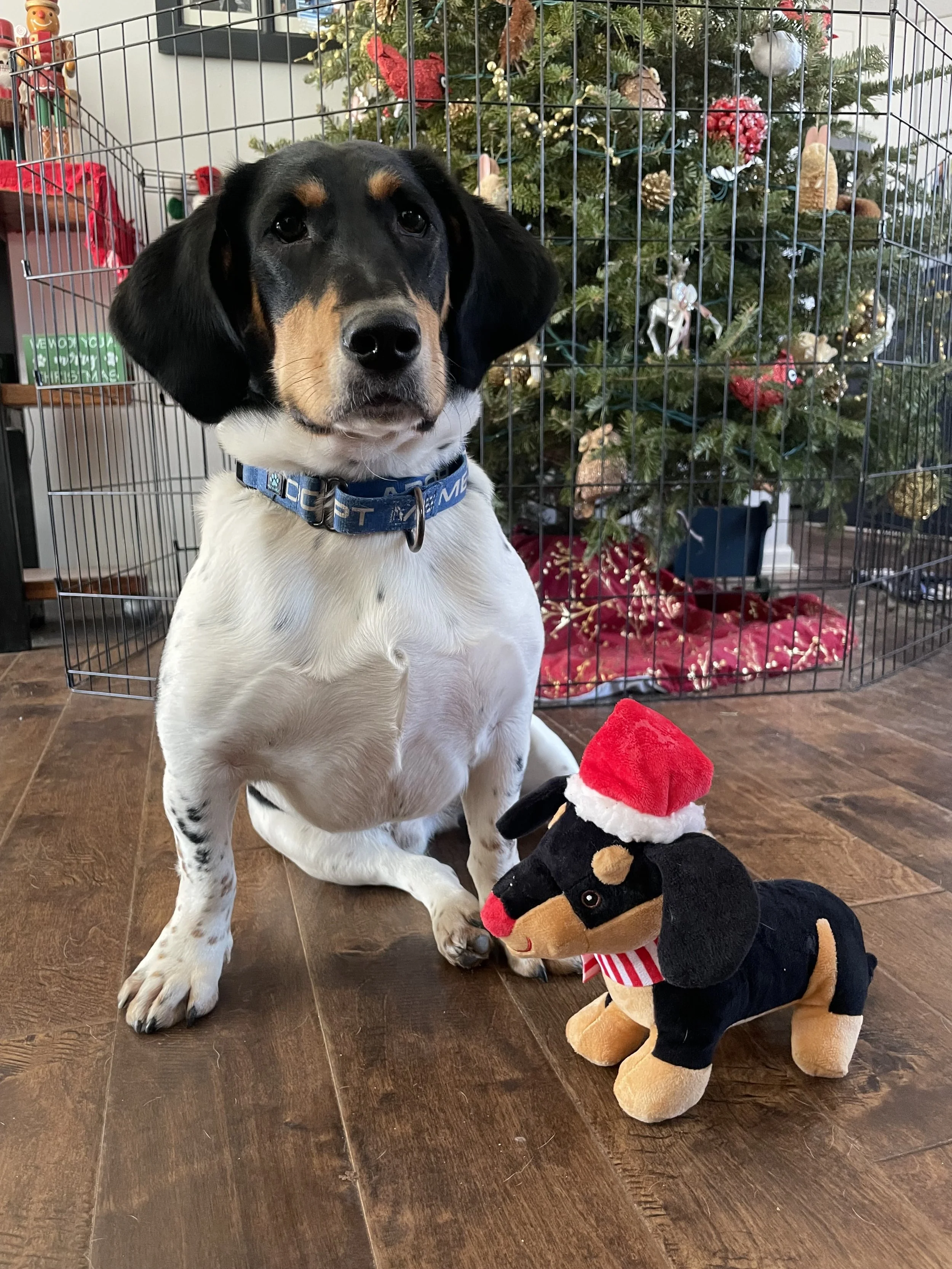 Howie is estimated to be around 1 year old and is currently around 35lbs. For fun, we did a DNA test that confirmed he’s 55% Basset Hound and 14% Dachshund. That mix explains his short stocky build and possibly his attitude.